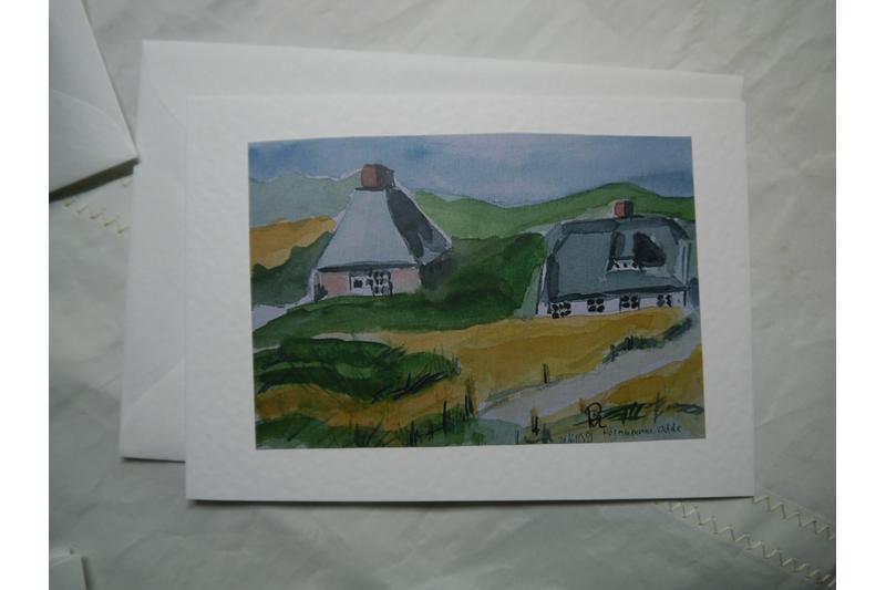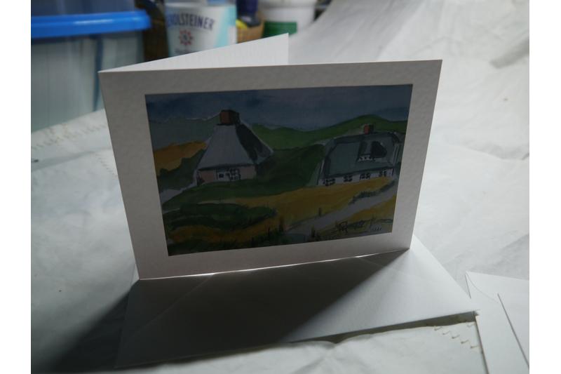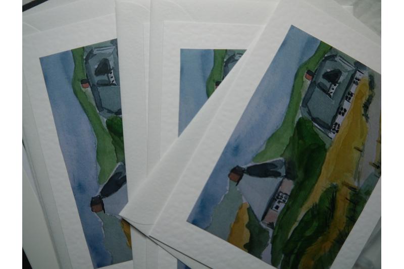 Bilder aquarelliert. Dieses Bild habe ich am 21. Juni 2009 gemalt. Das Bild habe ich digitalisiert, auf Fotopapier gedruckt. Diese Zeichnungen habe ich auf dann auf die Klappkarten geklebt.