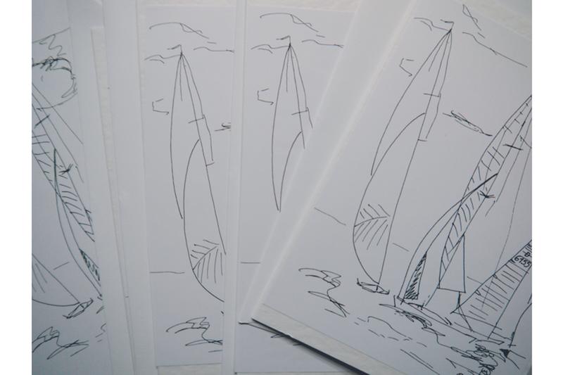 Gezeichnete Bilder in Tusche. Dieses Bild habe ich am 15. Juni 2014 gezeichnet. Die Zeichnung habe ich digitalisiert, auf Fotopapier gedruckt. Diese Zeichnungen habe ich auf dann auf die Klappkarten geklebt.